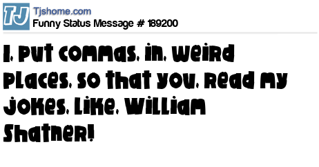 - # 153066 I, put commas, in, weird places, so that, you, read, my jokes, like William, Shatner.