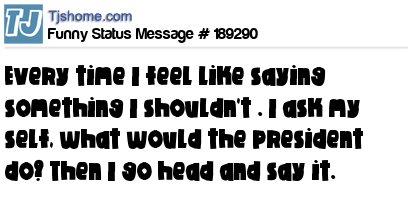 X is Every time I feel like saying something I shouldn't . I ask my self, what would the president do? Then I go head and say it.