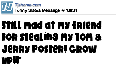 X is still mad at my friend for stealing my Tom & Jerry Poster! Grow up!!"