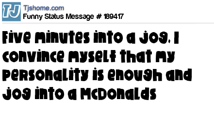X says Five minutes into a jog, I convince myself that my personality is enough and jog into a McDonalds