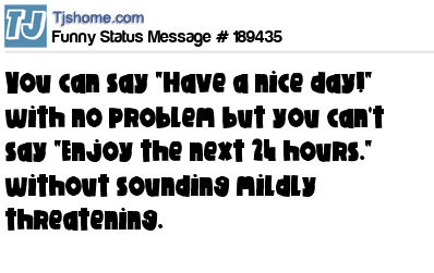 - # 195744 Saying “have a nice day” to someone sounds friendly, but saying “enjoy your next 24 hours” sounds threatening.