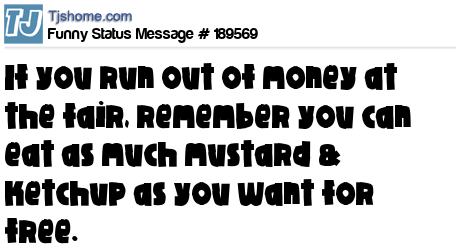 X says If you run out of money at the fair, remember you can eat as much mustard & ketchup as you want for free.