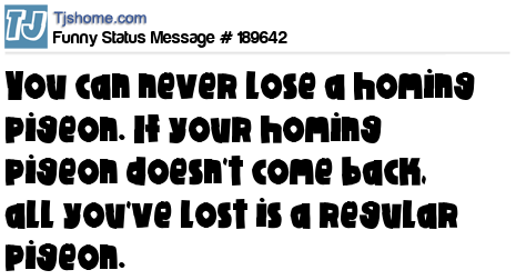 - # 153829 You can never lose a homing pigeon. If your homing pigeon doesn't come back, what you've lost is a normal pigeon.