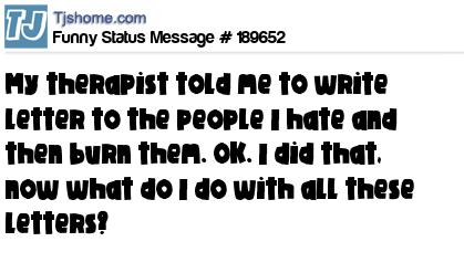 - # 189323 My therapist told me to write letter to the people I hate and then burn them. OK. I did that, now what do I do with all these letters?