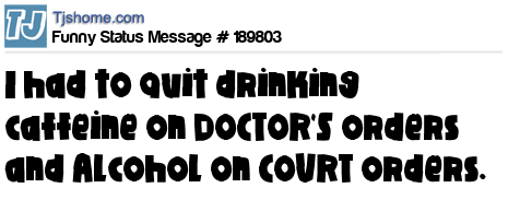 X says I had to quit drinking caffeine on DOCTOR'S orders and Alcohol on COURT orders.