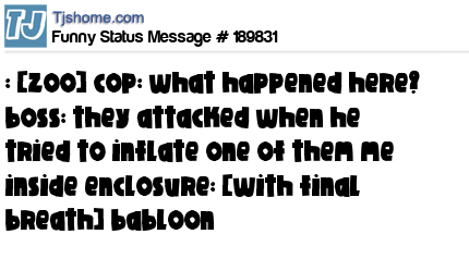 X says : [zoo] cop: what happened here? boss: they attacked when he tried to inflate one of them me inside enclosure: [with final breath] babloon