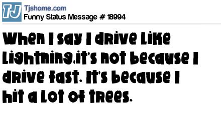 X When I say I drive like lightning,it's not because I drive fast. It's because I hit a lot of trees.
