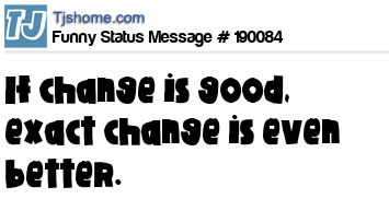 - # 132987 There is no better feeling on this good, green earth than having exact change.
