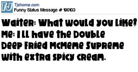 X says Waiter: What would you like? Me: I’ll have the Double Deep Fried McMeme Supreme with extra spicy cream.
