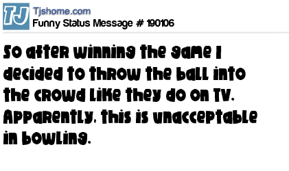 - # 203837 You know how they throw the ball into the crowd after they win the game? That's not allowed in bowling. I know that now.