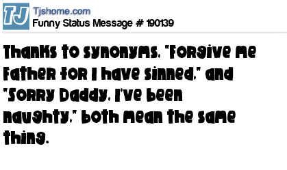 X says Thanks to synonyms, "Forgive me Father for I have sinned," and "Sorry Daddy, I've been naughty," both mean the same thing.