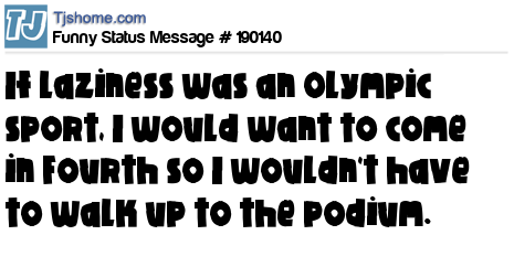 - # 189083 If laziness was an Olympic sport, I'd come in fourth so I wouldn't have to walk up to the podium.