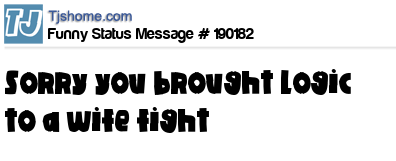 - # 145465 I'm still trying to figure out my wife's logic from an argument we had in 2003.