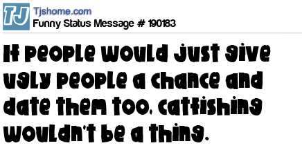 X says If people would just give ugly people a chance and date them too, catfishing wouldn't be a thing.