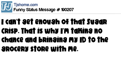 X is I can't get enough of that Sugar Crisp. That is why I'm taking no chance and bringing my ID to the grocery store with me.