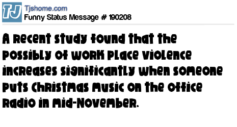 X says A recent study found that the possibly of work place violence increases significantly when someone puts Christmas music on the office radio in mid-November.