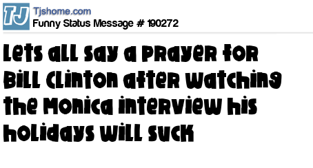 X says Lets all say a prayer for Bill Clinton after watching the Monica interview his holidays will suck