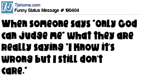 X says When someone says "Only God can judge me" what they are really saying "I know it's wrong but I still don't care."