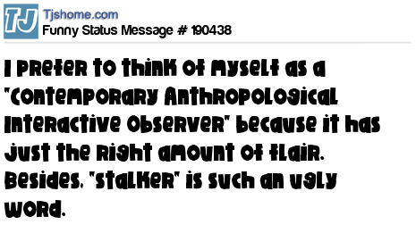 X says I prefer to think of myself as a "Contemporary Anthropological Interactive Observer" because it has just the right amount of flair. Besides, "stalker" is such an ugly word.
