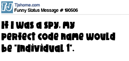 X is If I was a spy, my perfect code name would be "Individual 1".