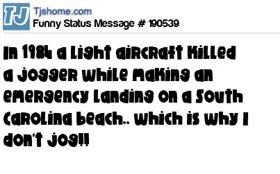 X is In 1984 a light aircraft killed a jogger while making an emergency landing on a South Carolina beach.. which is why I don't jog!!