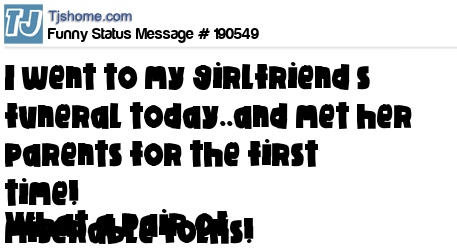 X is I went to my girlfriend’s funeral today..and met her parents for the first time!
