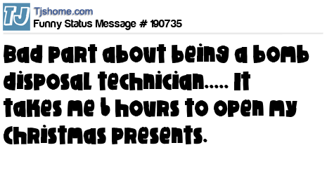 X is Bad part about being a bomb disposal technician..... It takes me 6 hours to open my Christmas presents.