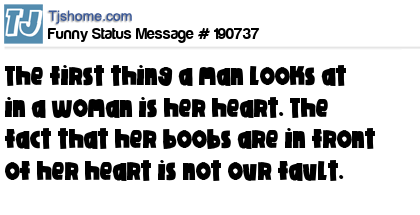 X says The first thing a man looks at in a woman is her heart. The fact that her boobs are in front of her heart is not our fault.