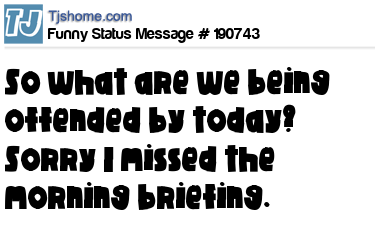 X says So what are we being offended by today? Sorry I missed the morning briefing.