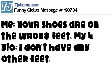 X Me: Your shoes are on the wrong feet. My 4 y/o: I don't have any other feet.