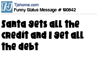 - # 119998 Dear Santa, Please send your credit card numbers. it's only fair since you're getting the credit for the gifts, that you should start paying for them also.