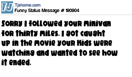 X says Sorry I followed your minivan for thirty miles. I got caught up in the movie your kids were watching and wanted to see how it ended.
