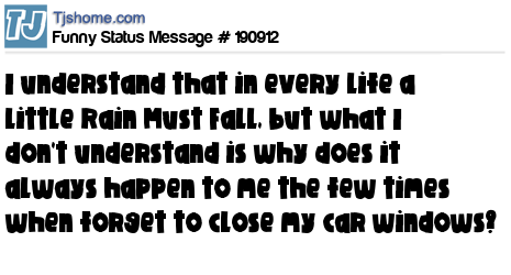 X is I understand that in every life a little Rain Must Fall, but what I don't understand is why does it always happen to me the few times when forget to close my car windows?