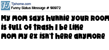 X says My mom says hunnie your room is full of trash I be like mom my ex isn't here anymore