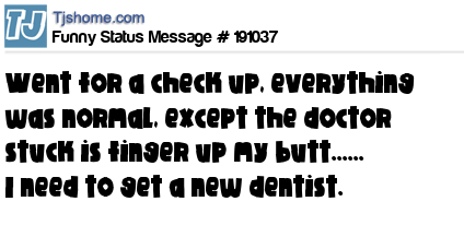 X is Went for a check up, everything was normal, except the doctor stuck is finger up my butt...... I need to get a new dentist.