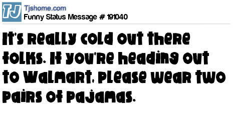 X is It's really cold out there folks. If you're heading out to Walmart, please wear two pairs of pajamas.