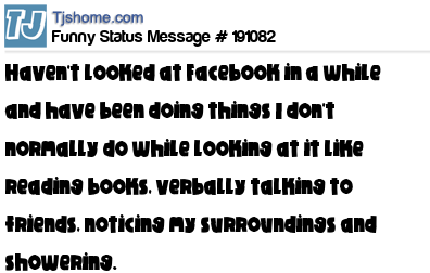 X is Haven't looked at Facebook in a while and have been doing things I don't normally do while looking at it like reading books, verbally talking to friends, noticing my surroundings and showering.