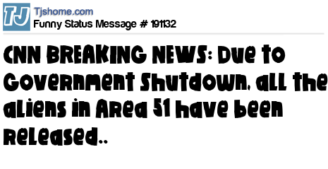 - # 137922 CNN Breaking news: Due to Government Shutdown, all the aliens in Area 51 have been released......