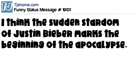 X says I think the sudden stardom of Justin Bieber marks the beginning of the apocalypse.