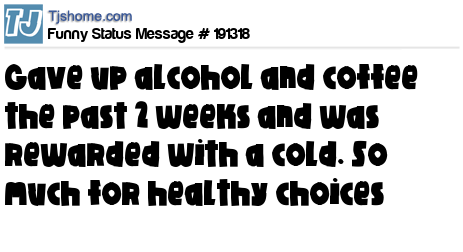 X says Gave up alcohol and coffee the past 2 weeks and was rewarded with a cold. So much for healthy choices 👎🏻
