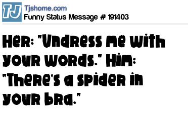 - # 187773 Her: "Undress me with your words." Him: "There's a spider in your bra."