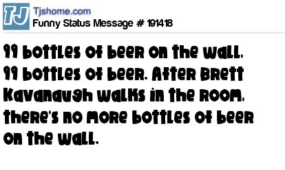 X is 99 bottles of beer on the wall, 99 bottles of beer. After Brett Kavanaugh walks in the room, there's no more bottles of beer on the wall.