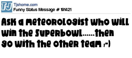 X says Ask a meteorologist who will win the Superbowl......then go with the other team ;-)