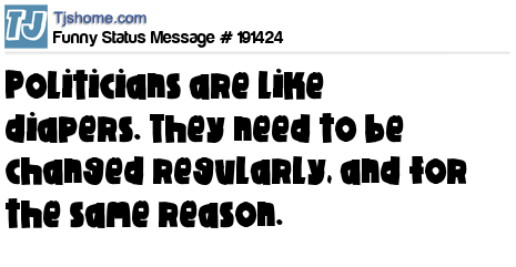 - # 174040 You know what I like about Politicians? ..... When they leave office. Heck, they're just like Diapers ... they need to be changed .... AND often!!!