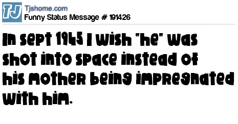 X is In sept 1945 I wish "he" was shot into space instead of his mother being impregnated with him.