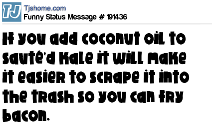 X says If you add coconut oil to sauté'd kale it will make it easier to scrape it into the trash so you can fry bacon.