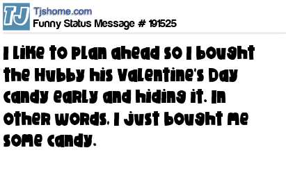 X says I like to plan ahead so I bought the Hubby his Valentine's Day candy early and hiding it. In other words, I just bought me some candy.