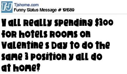X says Y’all really spending $300 for hotels rooms on Valentine’s Day to do the same 3 position y’all do at home?