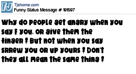 X is Why do people get angry when you say F you, or give them the finger ? But not when you say srrew you or up yours ? Don't they all mean the same thing ?