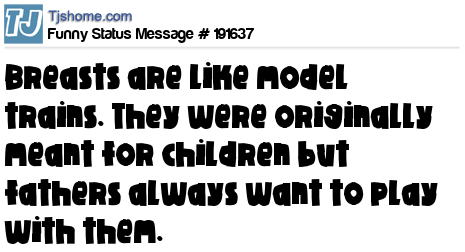 - # 146007 Boobs are like model trains. They were originally for children but grown men always want to play with them.